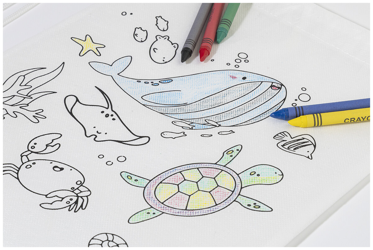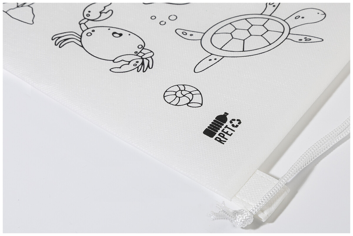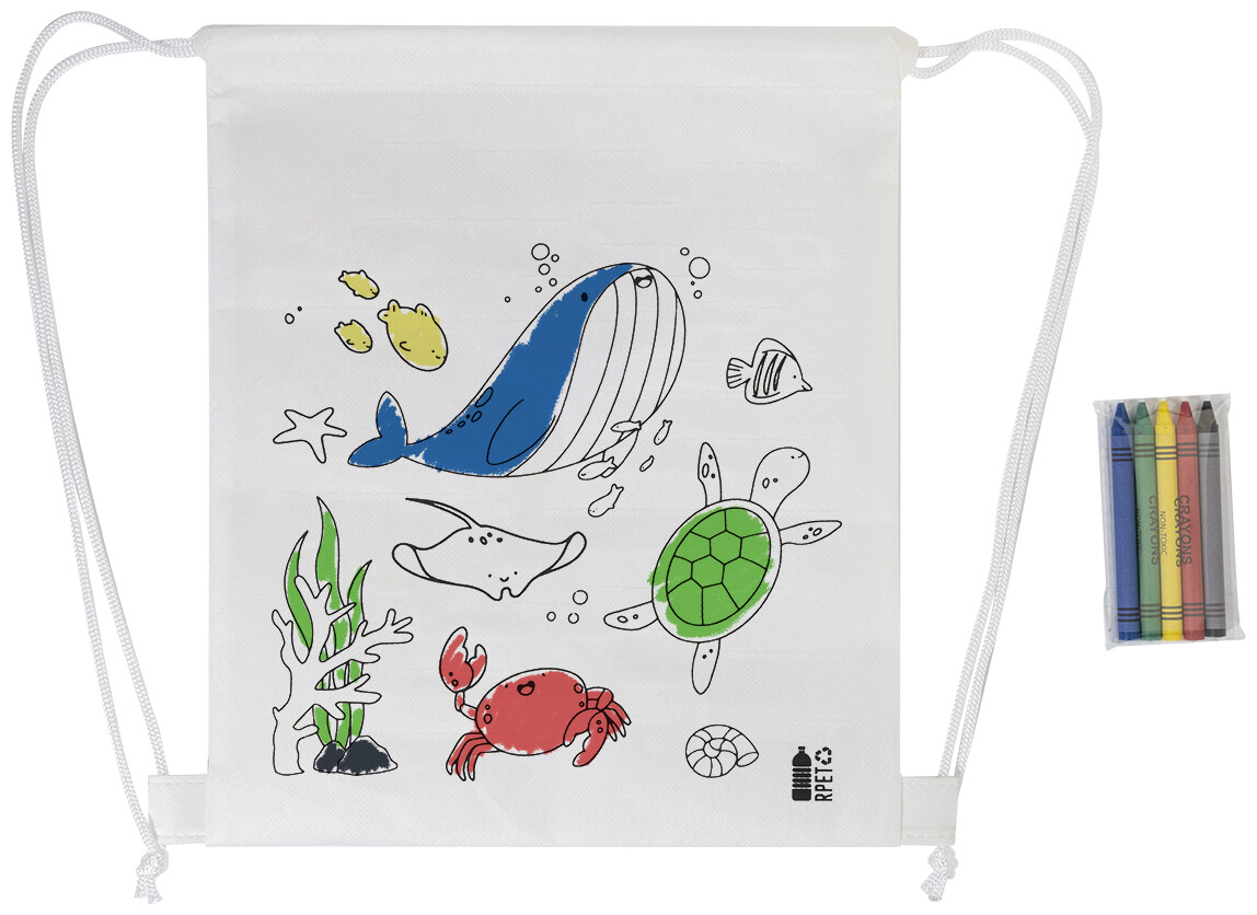 Vak se stahovací šňůrkou pro děti z netkané RPET tkaniny s 5 voskovkami na vybarvení.
