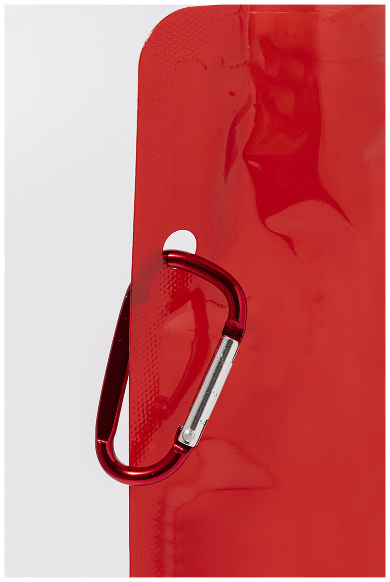 Skládací sportovní láhev z RPET s víčkem na pití a hliníkovou karabinou, 500 ml. Bez BPA. Nevhodná pro sycené nápoje.