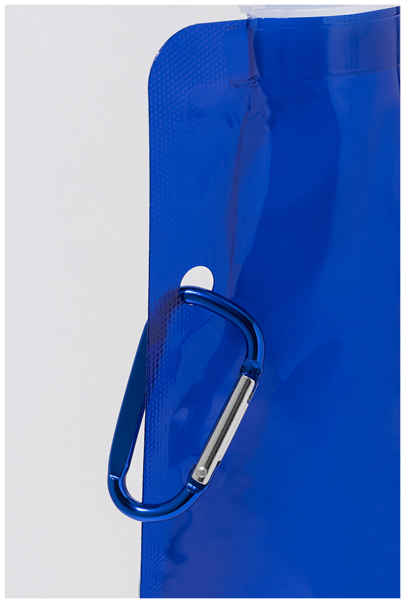 Skládací sportovní láhev z RPET s víčkem na pití a hliníkovou karabinou, 500 ml. Bez BPA. Nevhodná pro sycené nápoje.