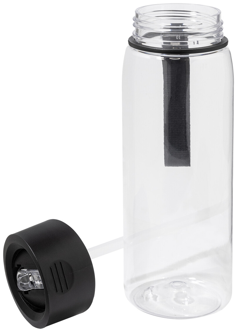 Chladicí sportovní ručník z RPET polyesteru v RPET sportovní lahvi s PP víčkem typu flip-top, integrovaným brčkem a přenosným popruhem. Objem 800 ml. Neobsahuje BPA. Není vhodná pro sycené nápoje. Velikost ručníku: 30 × 80 cm.