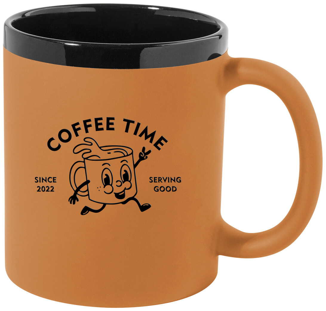 Keramický hrnek s měkkým pogumovaným povrchem a černým vnitřkem a okrajem, 300 ml. Se speciálním povrchem pro gravírování, gravírované logo ladí s barvou na vnitřní straně. V krabičce z kraftového papíru.
