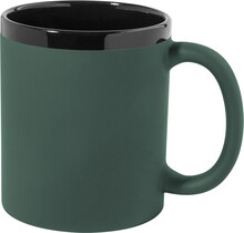 Keramický hrnek s měkkým pogumovaným povrchem a černým vnitřkem a okrajem, 300 ml. Se speciálním povrchem pro gravírování, gravírované logo ladí s barvou na vnitřní straně. V krabičce z kraftového papíru.