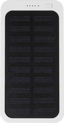 Power banka z recyklovaného ABS plastu s vestavěnou solární nabíječkou a baterií 4000 mAh. S 1 USB a 1 USB-C portem pro nabíjení. Vstupní port USB-C. Včetně nabíjecího kabelu USB.