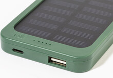 Power banka z recyklovaného ABS plastu s vestavěnou solární nabíječkou a baterií 4000 mAh. S 1 USB a 1 USB-C portem pro nabíjení. Vstupní port USB-C. Včetně nabíjecího kabelu USB.