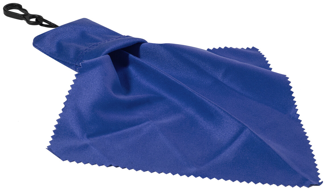 Čisticí hadřík ze 100% RPET mikrovlákna (220 g/m2) na brýle a obrazovky. Přenosné pouzdro z odpovídajícího materiálu s PP karabinou. Rozměr hadříku: 15×15 cm.