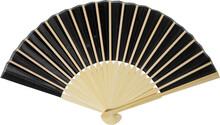 Vějíř z RPET polyesteru s bambusovými žebry.
