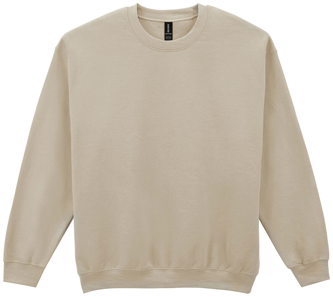 Mikina s kulatým výstřihem z 50 % bavlny a 50 % polyesteru. 271 g/m2 (bílá 257 g/m2). Výrobek značky Gildan.