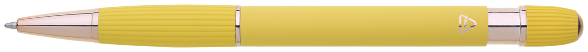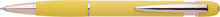 Kovová propiska se soft povrchem a doplňky v růžovo-zlaté barvě. Laserované logo je lesklé, růžovo-zlaté. Náplň modře píšící. Výsledný efekt laserového značení je lesklý, v barvě doplňků.