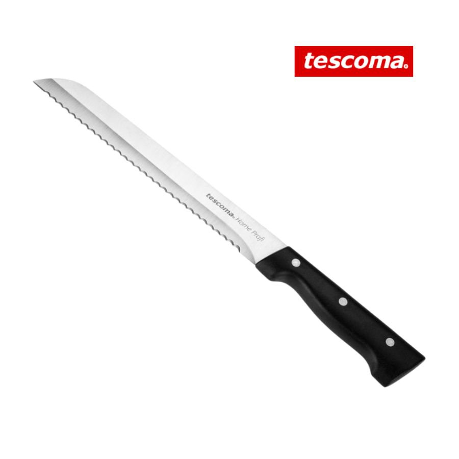 Nůž na chléb HOME PROFI je kuchyňský nůž určený pro krájení pečiva. Má čepel z prvotřídní nerezavějící oceli a ergonomickou rukojeť z tvrdého odolného plastu se třemi masivními nýty.