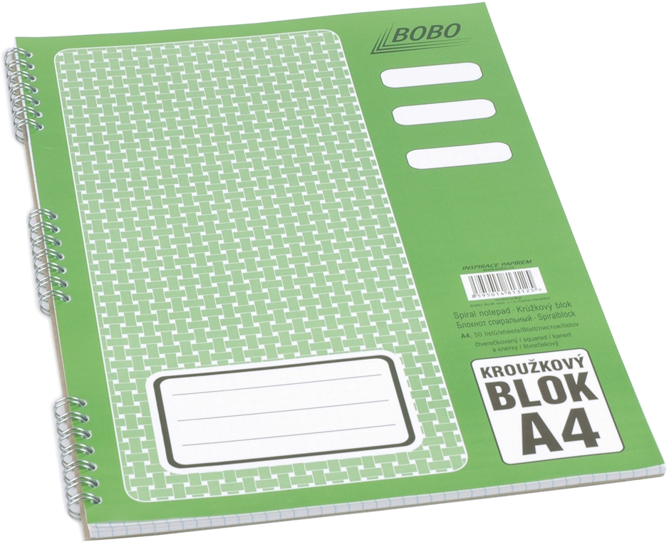 SPIRÁLOVÝ BLOK BOBO BOČNÍ A4 čtvereček