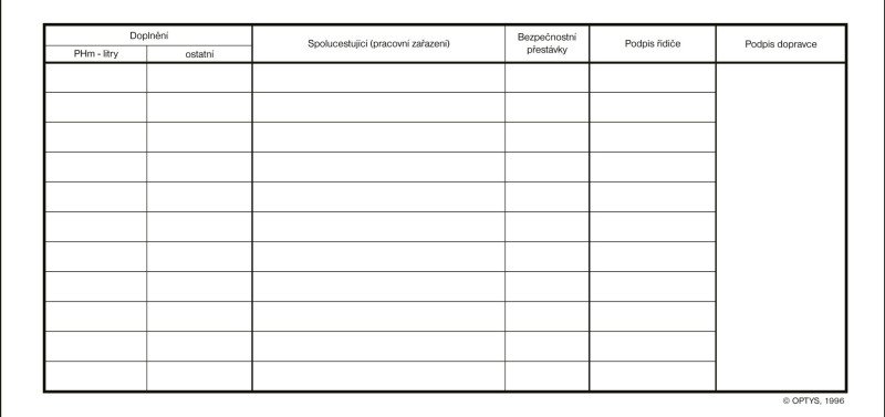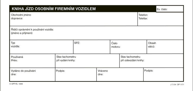 KNIHA JÍZD OSOBNÍHO FIREMNÍHO VOZIDLA OPTYS 21x10/32