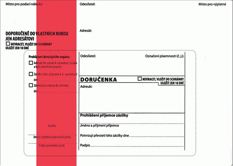 PO DORUČENKA B6, ČERVENÁ samopropisovací, s poučením