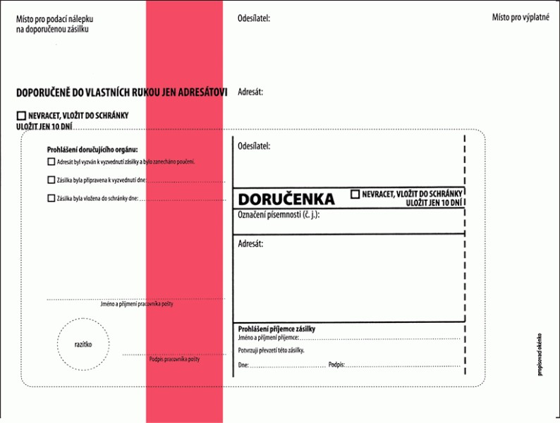 PO DORUČENKA S DODEJKOU C5 zkrácená, kr. p. samopropisovací, červený pruh