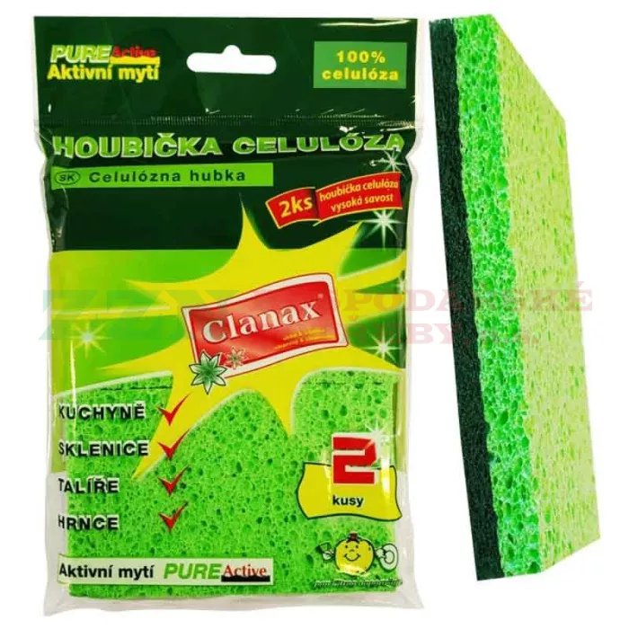 Oboustranné houby z celulózy vhodné pro každodenní úklid a mytí nádobí. Vyznačují se vysokou savostí a šetrností k povrchům.