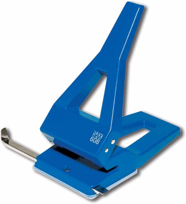 Blokový děrovač, kapacita 63 listů, úspora 25 % síly při děrování. Barevné provedení: modré.