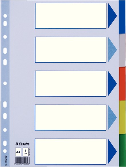 Rozřaďovač Esselte A4, mix barev, 5 listů