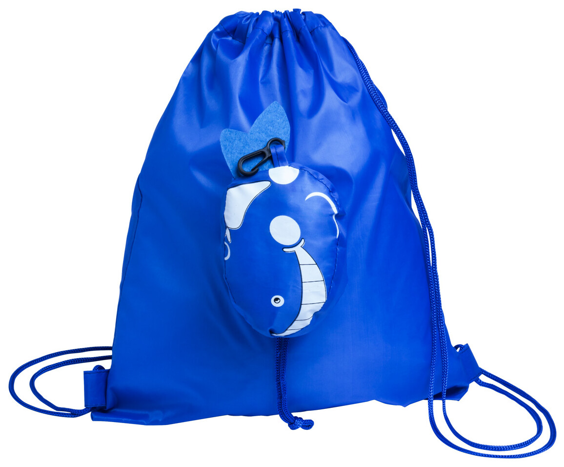 Vak na stažení šňůrkou pro děti v pouzdře ve tvaru zvířátka, s plastovou karabinkou, 190T polyester.