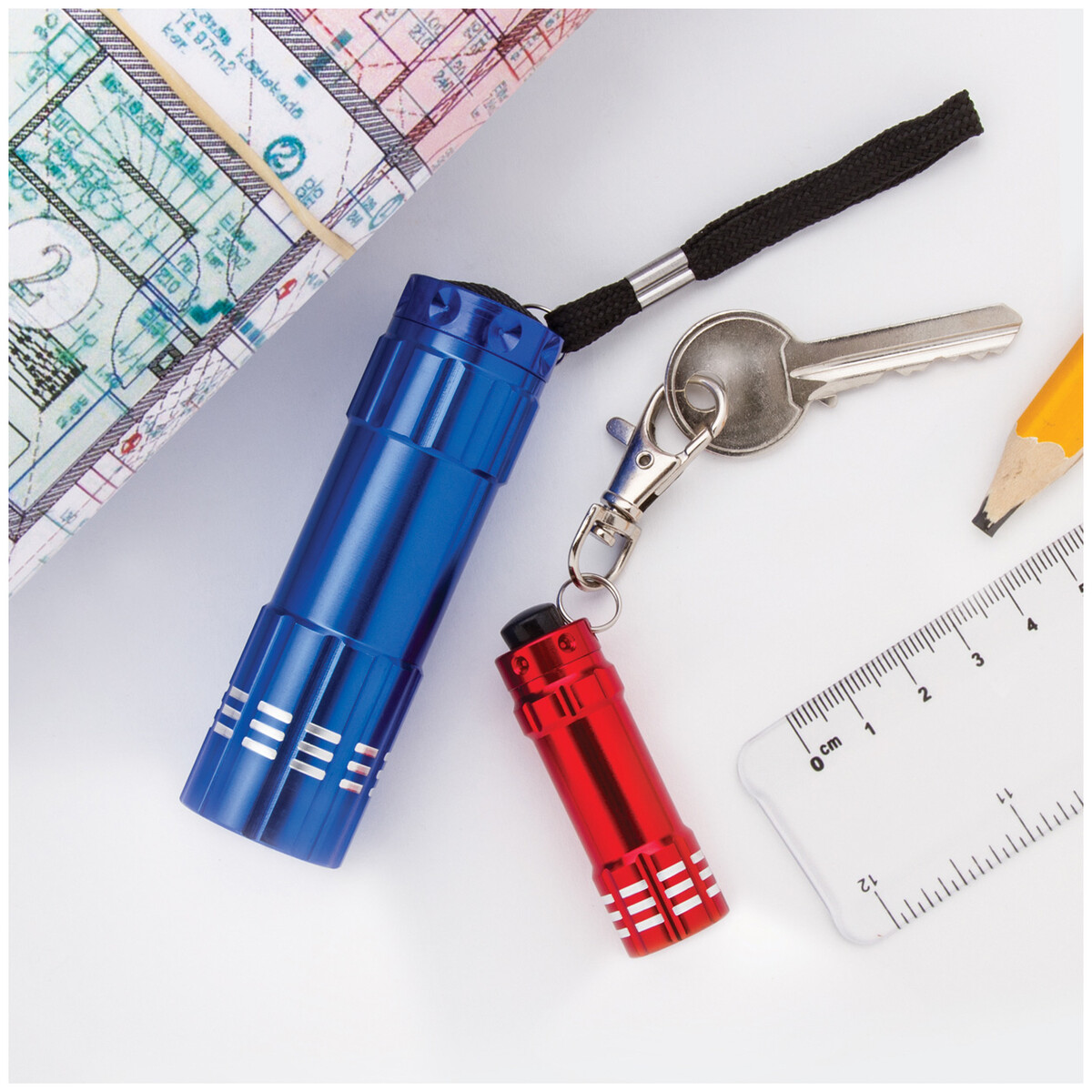 Mini hliníková baterka s 3mi LED diodami a karabinkou. Dodáváno s baterií.