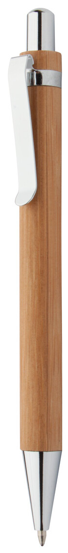 Kuličkové pero z bambusu s kovovým klipem. S modrou náplní.