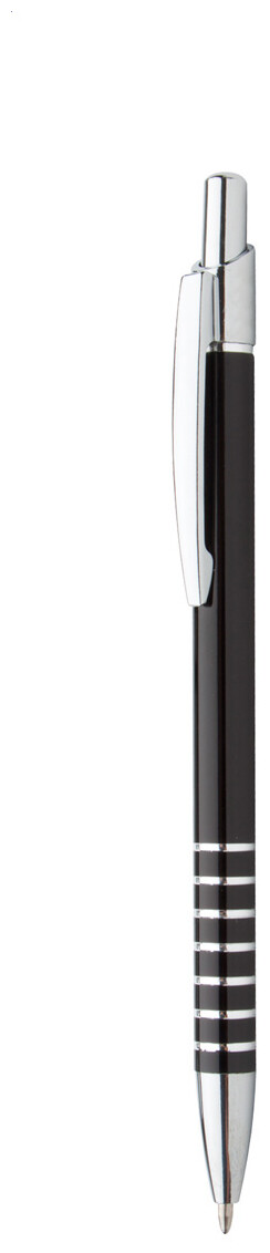 Hliníkové kuličkové pero s kovovým klipem a chromovanou špičkou a vrškem. Dodává se s modrou náplní.