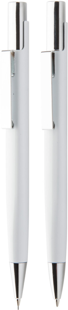 Hliníková sada kuličkového pera a mechanické tužky v černé dárkové krabičce. Modrá náplň, 0,7 mm tuhy.