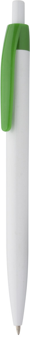 Plastové kuličkové pero s bílým tělem a barevným klipem, s modrou náplní.