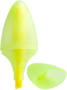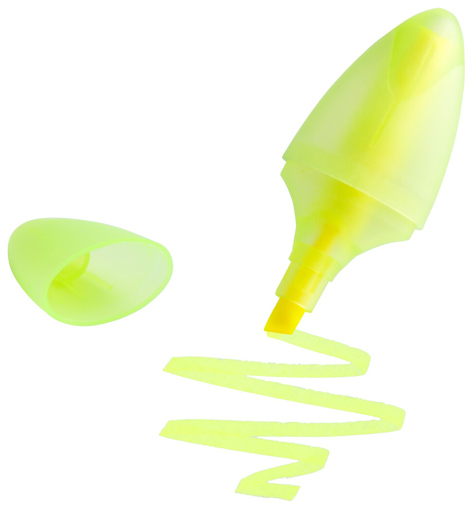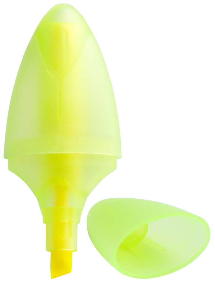 Zvýrazňovač ve tvaru kapsle v průsvitném plastovém obalu.