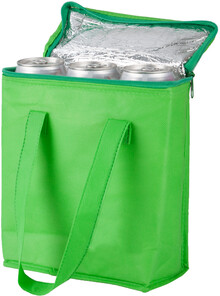 Chladící taška z netkané textilie na zip s hliníkovou vsadkou uvnitř. Pro 6ks plechovek 0,33 l nebo 3ks 0,5 l.