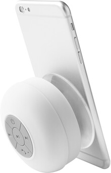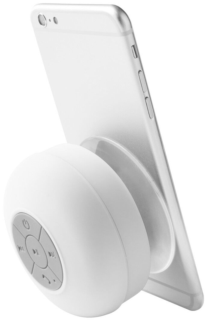 Bezdrátový reproduktor s pogumovaným krytem a velkou přísavkou. S funkcí hands-free volání a vestavěnou dobíjecí baterií. Včetně nabíjecího kabelu USB.