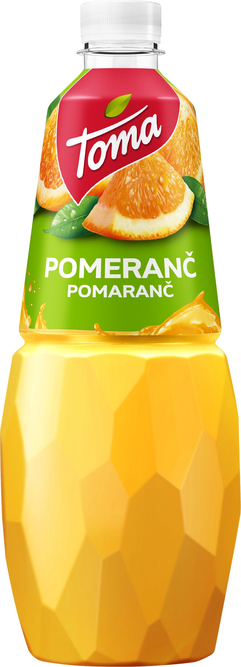 Jsem váš džus s bohatou chutí pomeranče. Již jednou sklenkou pokrývám vaši denní potřebu vitaminu C. Nemám v sobě žádné umělé ani konzervační látky. Přináším vám tak lahodnou chuť pro vaše každodenní osvěžení. Vaše TOMA. Objem: 1 l.