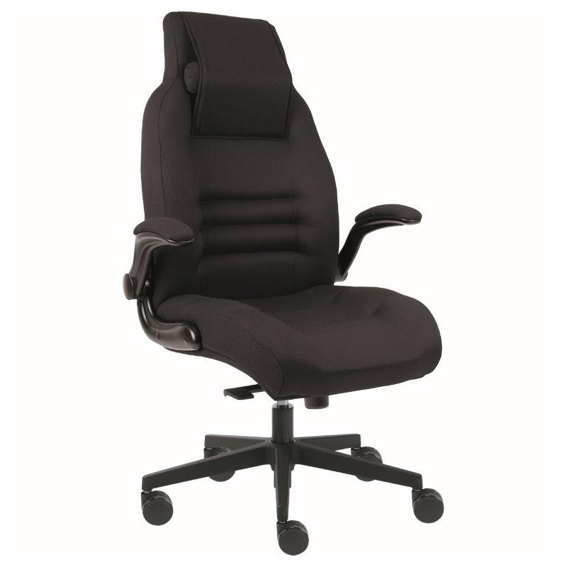 Robustní pohodlné celočalouněné křeslo určené pro 24-hodinový provoz, vybavené sklopnými područkami a výškově stavitelnou podpěrou hlavy.