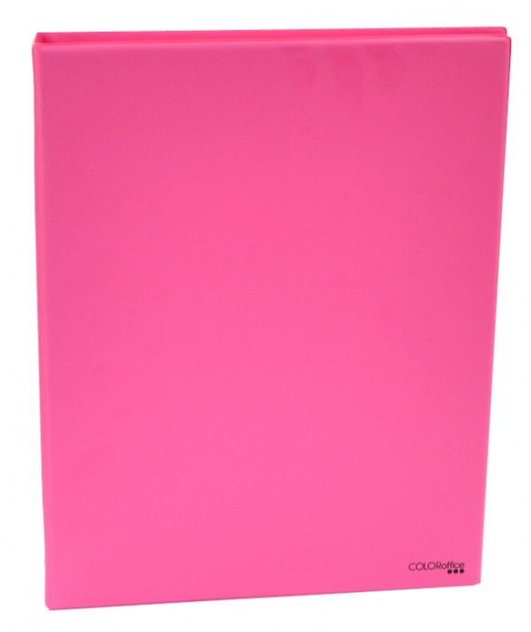 Poznámkový blok se čtyřkroužkovou mechanikou, 100 listů s linkami, materiál PVC. Formát: A4, barva obalu: růžová.
