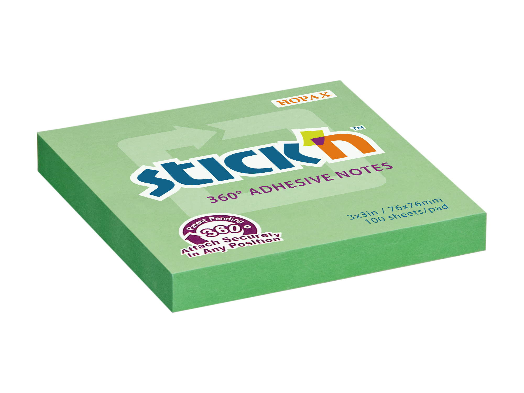 Samolepicí bloček Stick'n by Hopax 360°, 76 x 76 mm, zelený, 100 lístků