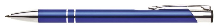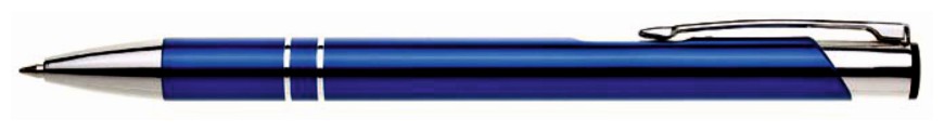 ORIN je velmi oblíbená hliníková reklamní tužka. Lesklé, tmavě modré tělo se dvěma stříbrnými proužky a chromovými doplňky.