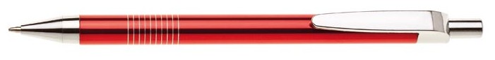 Kuličkové pero LAURIA je vyrobeno z hliníku. Má červené tělo se stříbrnými doplňky jako jsou špička, klip a cvakátko. Úchopová část má 10 stříbrných proužků po celém obvodu tužky. Náplň- X20, modře píšící.