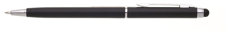 Plastové, kuličkové pero s tenkým, černým tělem a s chromovými doplňky. Pero má otočný mechanismus a na konci těla touch pro dotykové displeje. Náplň X 20, modře píšící.
