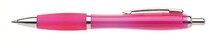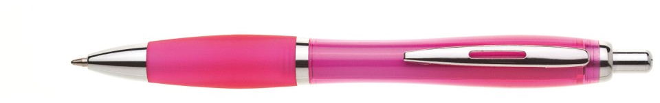 Oblíbené plastové propisovací pero ULTA s celobarevným, transparentním, růžovým tělem. Barva pogumovaného úchopu je stejná jako tělo. Pero je zdobené stříbrným proužkem, ostatní doplňky jsou také stříbrné. Náplň je velkoobsahová, modře píšící. Kolekce EV