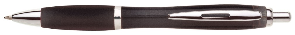 Oblíbené plastové propisovací pero ULTA s celobarevným, transparentním, černým tělem. Barva pogumovaného úchopu je stejná jako tělo. Pero je zdobené stříbrným proužkem, ostatní doplňky jsou také stříbrné. Náplň je velkoobsahová, modře píšící. Kolekce EVER