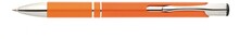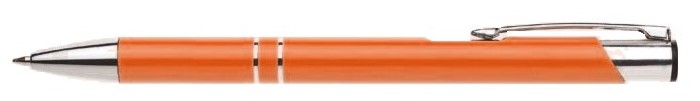 Plastové propisovací pero OIRA - oranžové . Pero je zdobené dvěma stříbrnými proužky. Na těle je zdobeno oválným výřezem. Pero má náplň velkoobsahovou, modře píšící.