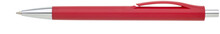 Propiska LINEA červená má zajímavě řešený klip a stříbrné doplňky, modře píšící náplň. Kolekce DESIGN.