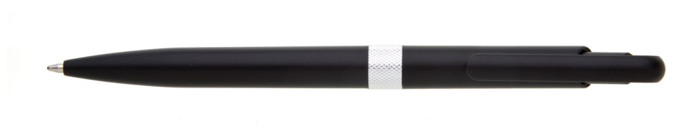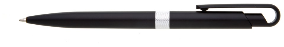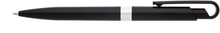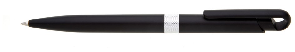 Plastové, kuličkové pero FIROL má černé, metalické tělo se stříbrným rýhovaným proužkem uprostřed. Náplň velkoobsahová, modře píšící. Kolekce DESIGN.