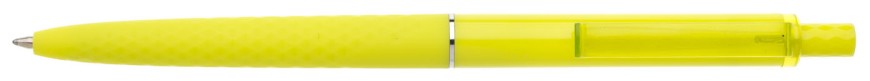Tenká žlutá propiska má 3D soft povrch ve spodní části, horní část propisky je hladká, vhodná pro umístění loga, Obě části odděluje tenký stříbrný kroužek. Klip je průhledný v barvě propisky. Kolekce DESIGN. Náplň X20 modře píšící.