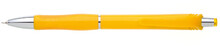 Žlutá, plastová propiska s pochromovanými doplňky jako jsou klip, tělo cvakátka a proužek uprostřed těla tužky. Grip je částečně pogumovaný v barvě tužky, stejně jako klip a vrchní část cvakátka. Náplň X20, hrot 0,5mm.