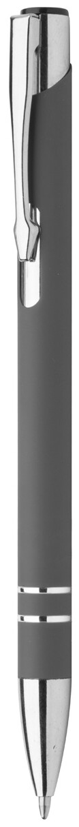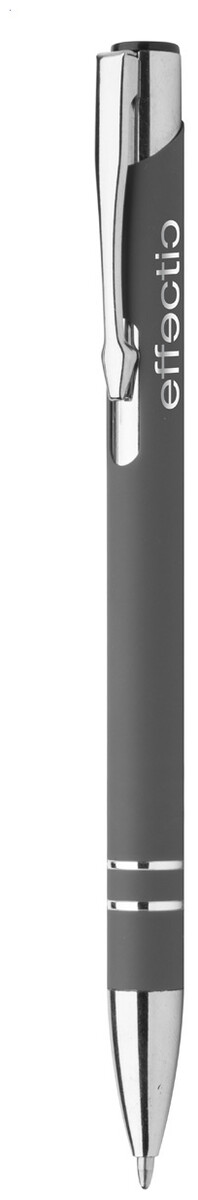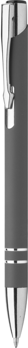Hliníkové kuličkové pero s pogumovaným povrchem a modrou náplní. Speciální povrch pro laser stříbrného loga.