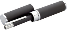 TUBLA PLUS -  hliníková propiska s rovným černým tělem a stříbrnými doplňky v dárkovém tubusovém pouzdře shodné barvy s propiskou. Propiska i pouzdro jsou vhodné pro laser. Značka Gabrielis.