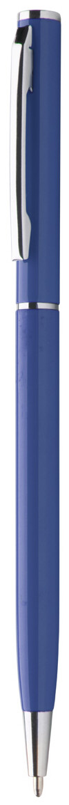 Hliníkové kuličkové pero s modrou náplní.