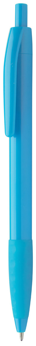 Plastové kuličkové pero se stejně barevným gumovým úchopem, s modrou náplní.