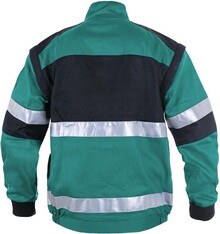 Pánská montérková blůza, odepínací rukávy s pružnou manžetou, kryté zapínání na zip a suché zipy, náprsní kapsy s klopami, skrytá náprsní kapsa na zip, jednoduché boční kapsy, pas na bocích do gumy, reflexní pruhy.