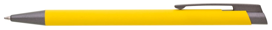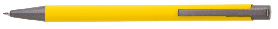 Elegantní žlutá  propiska v čistém designu ARMI SOFT má pogumovaný soft povrch a matné šedé doplňky. Náplň velkoobsahová, modře píšící.