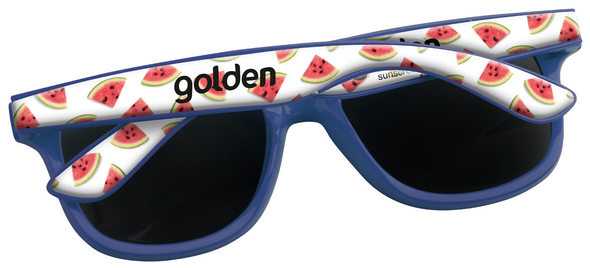 Plastové sluneční brýle se speciálními nožičkami pro epoxy potisk. S ochranou UV 400. Cena zahrnuje epoxy potisk na nožičkách, nezahrnuje tiskovou přípravu. Min. mn.: 100 ks.
